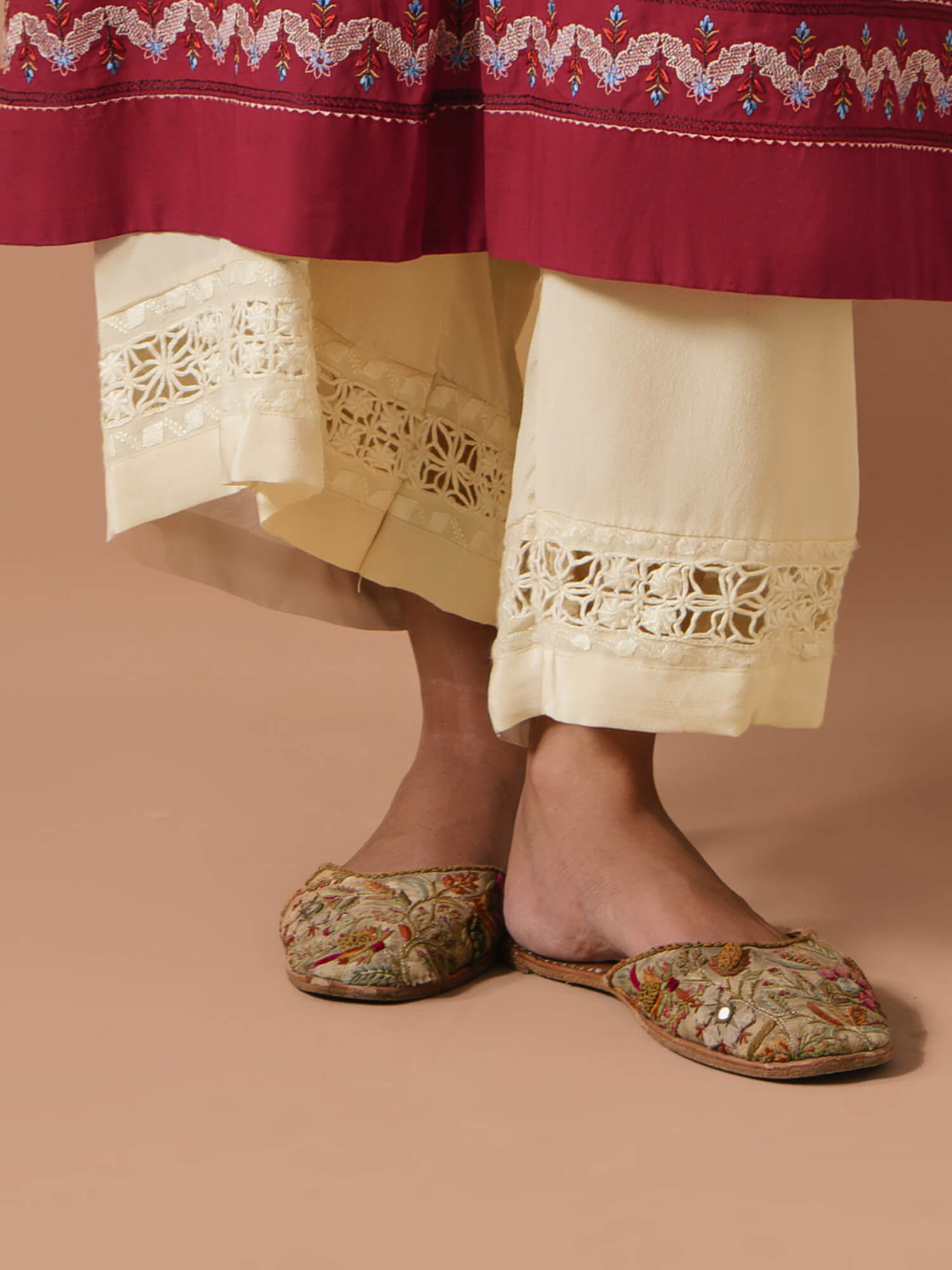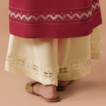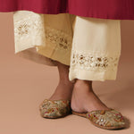 Cut from ivory crepe, our timeless izaar features fine tarkashi work. Perfect for all your pre fall soirées.