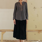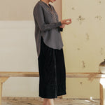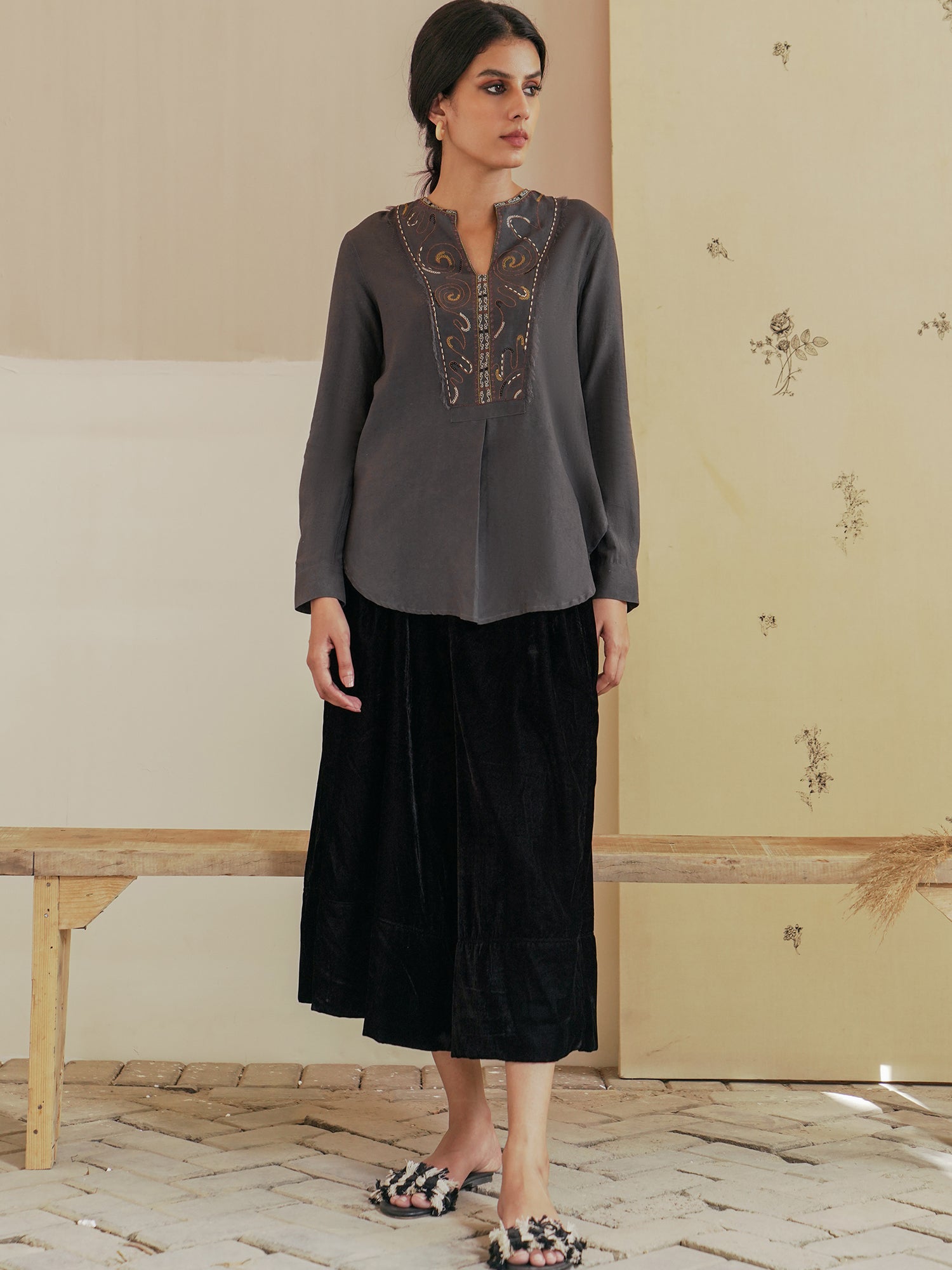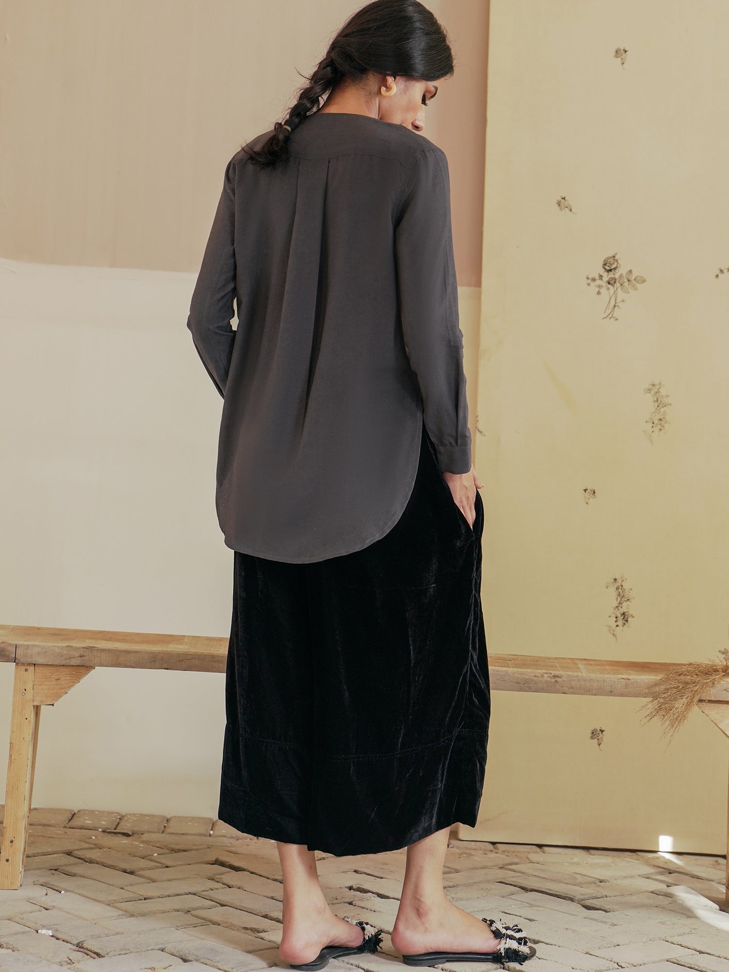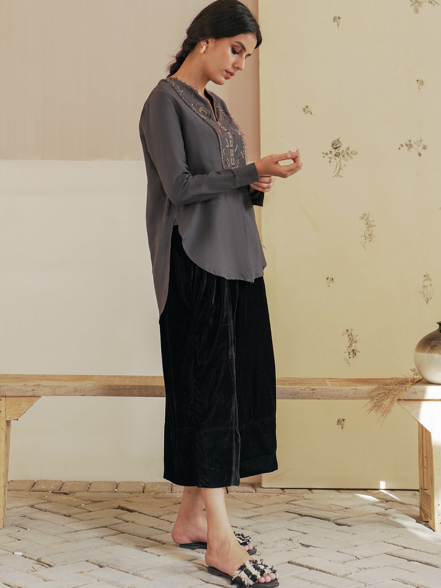 For the urban nomad. This Sylvie top features a crafted neckline and is paired with our black culottes to transition from desk to dusk, effortlessly.
