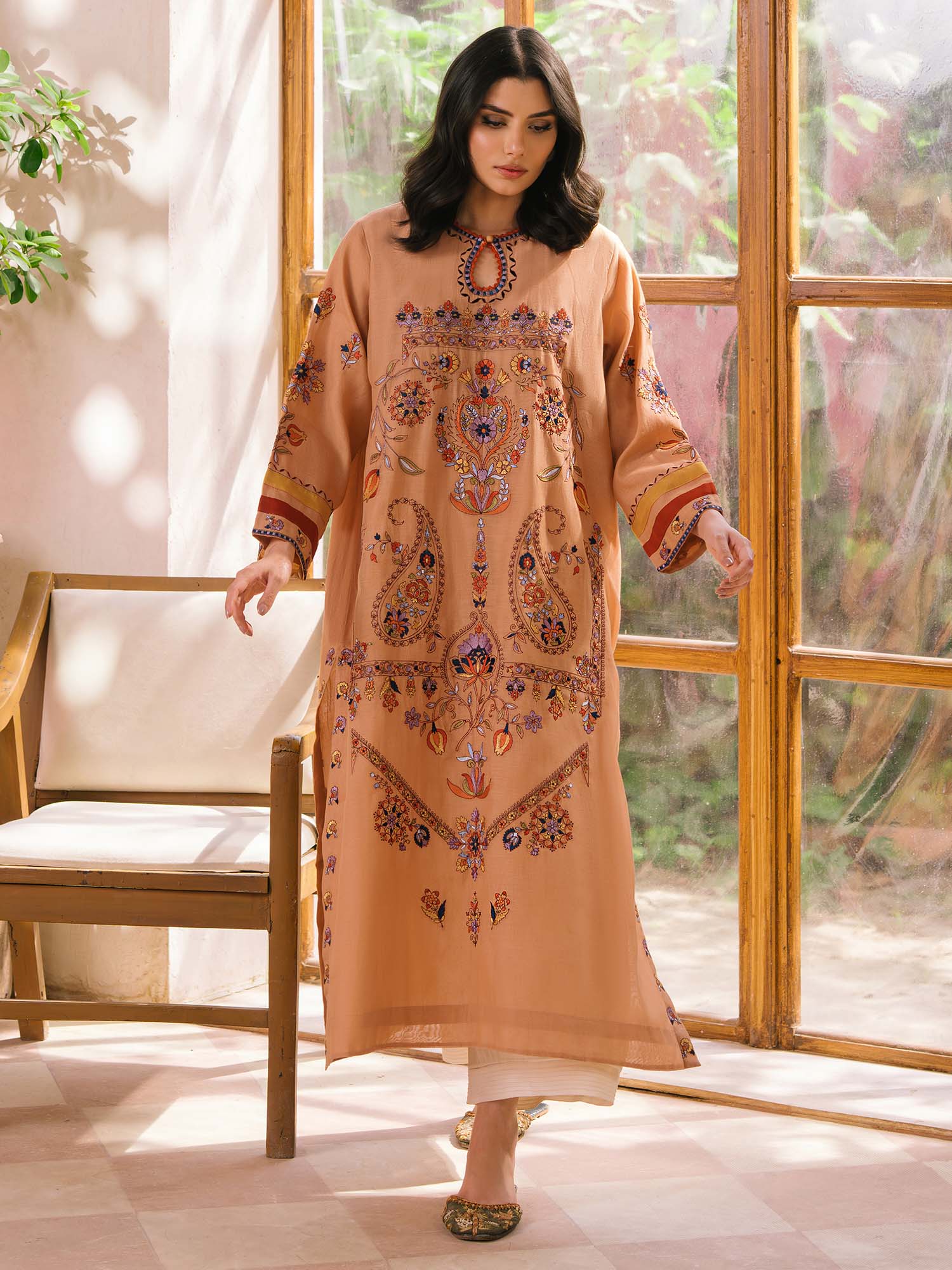 The Tabu is a perennial favorite silhouette that can be dressed up or down for any festive occasion. Inspired by Kashmiri motifs, it features fine Kashmiri embroidery in complementing hues. It is paired with our ivory izaar for all your summer dalliances.